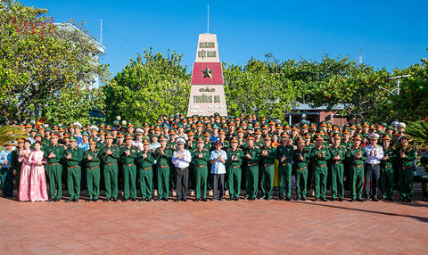 Delegation members share encouragement from the mainland with troops safeguarding sovereignty in the Truong Sa area.
